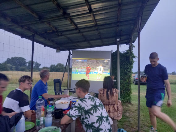 Da an diesem Samstag im Rahmen der Fußballeuropameisterschaft das Gruppenspiel Deutschland gegen Dänemark ausgetragen wurde, bot sich erstmals die Möglichkeit das Spiel quasi im Rahmen eines "Public Viewing" live auf unserem Modellflugplatz zu verfolgen.